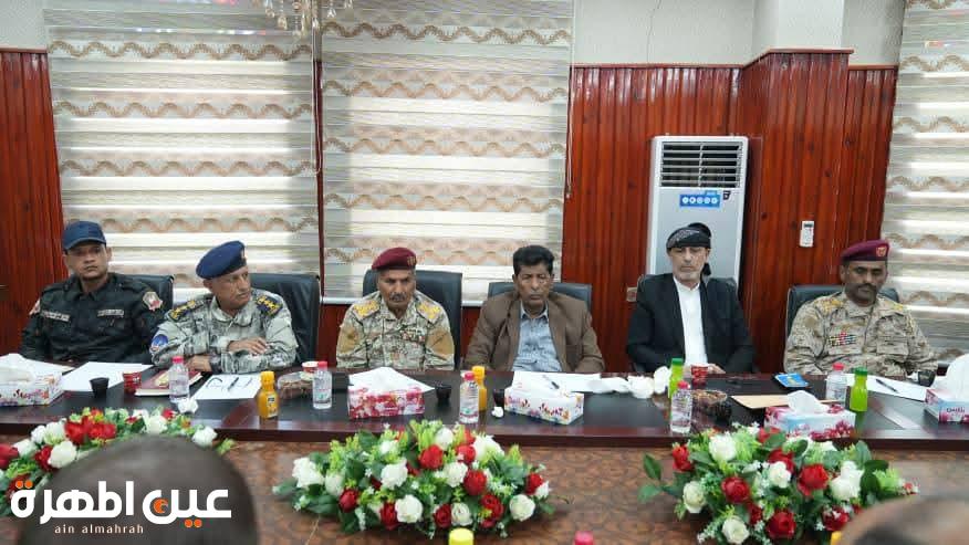 وتناول اللقاء أبرز التحديات التي تواجه الأجهزة الأمنية والعسكرية في المحافظة، خصوصًا وان محافظة المهرة تمتلك أطول شريط ساحلي وحدود مفتوحة مع محافظة حضرموت من جهة الصحراء، مقابل ضعف في التجهيزات والإمكانات المتاحة لقوات خفر السواحل.