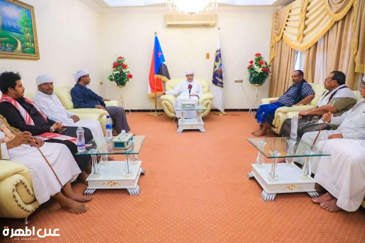 استقبل الأستاذ علي عبدالله الكثيري، رئيس الجمعية الوطنية للمجلس الانتقالي الجنوبي، اليوم الإثنين، وفدًا من مقادمة ومشايخ ووجهاء قبيلة بني تميم، وذلك في مقر إقامته بالقصر الرئاسي بمدينة سيئون.
