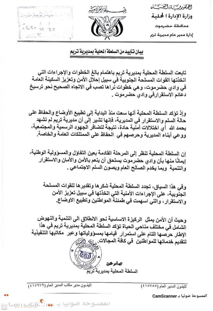 من جانبه، نقل فريق التوجيه والرقابة الرئاسي في المجلس الانتقالي الجنوبي تحيات الرئيس القائد عيدروس قاسم الزُبيدي، رئيس المجلس الانتقالي الجنوبي، وتحيات الأستاذ علي عبدالله الكثيري، رئيس الجمعية الوطنية، مقدمين التهاني بمناسبة الانتصارات التي حققتها القوات المسلحة الجنوبية وقوات النخبة الحضرمية في تحرير وادي وصحراء حضرموت، ومؤكدين أهمية الحفاظ على هذه المكاسب وتعزيز دعائم الأمن والاستقرار في المحافظة.